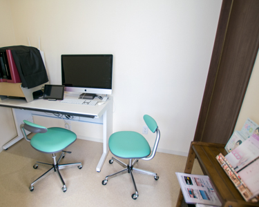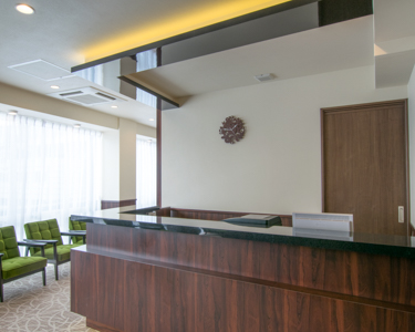 遮光ウインドウフィルム、遮光ブラインド、レースカーテンの3重構造で紫外線を完全に防御しながらも明るい待合で、上質なBGMやソファーにてくつろいでお待ち下さい。
